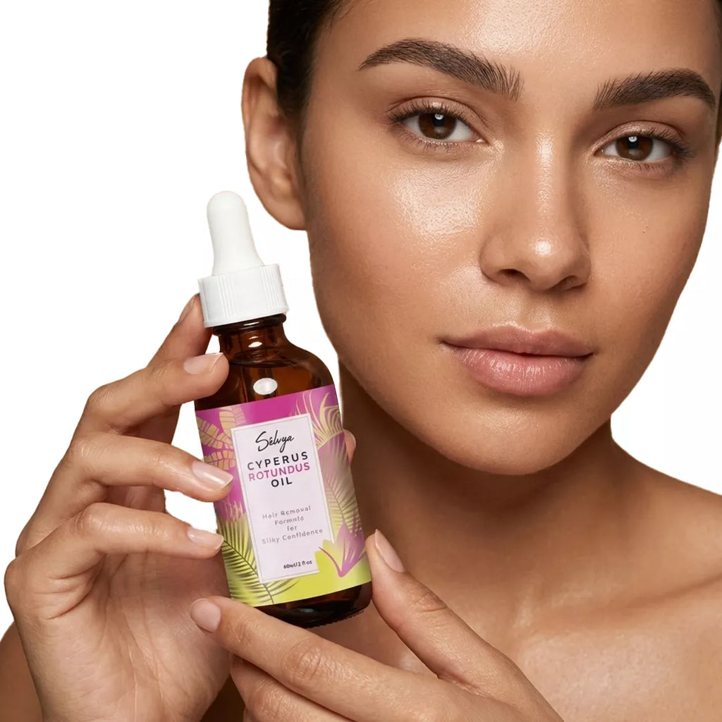 O Sélvya é um óleo 100% natural, formulado com extrato de Cyperus Rotundus e um blend poderoso de óleos como jojoba, tea tree e rosa mosqueta, que reduz o crescimento dos pelos, suaviza a pele e ainda ajuda na regeneração da região. Ideal para quem está cansada de depilar todo dia ou já gastou uma fortuna com laser, cera ou cremes agressivos.